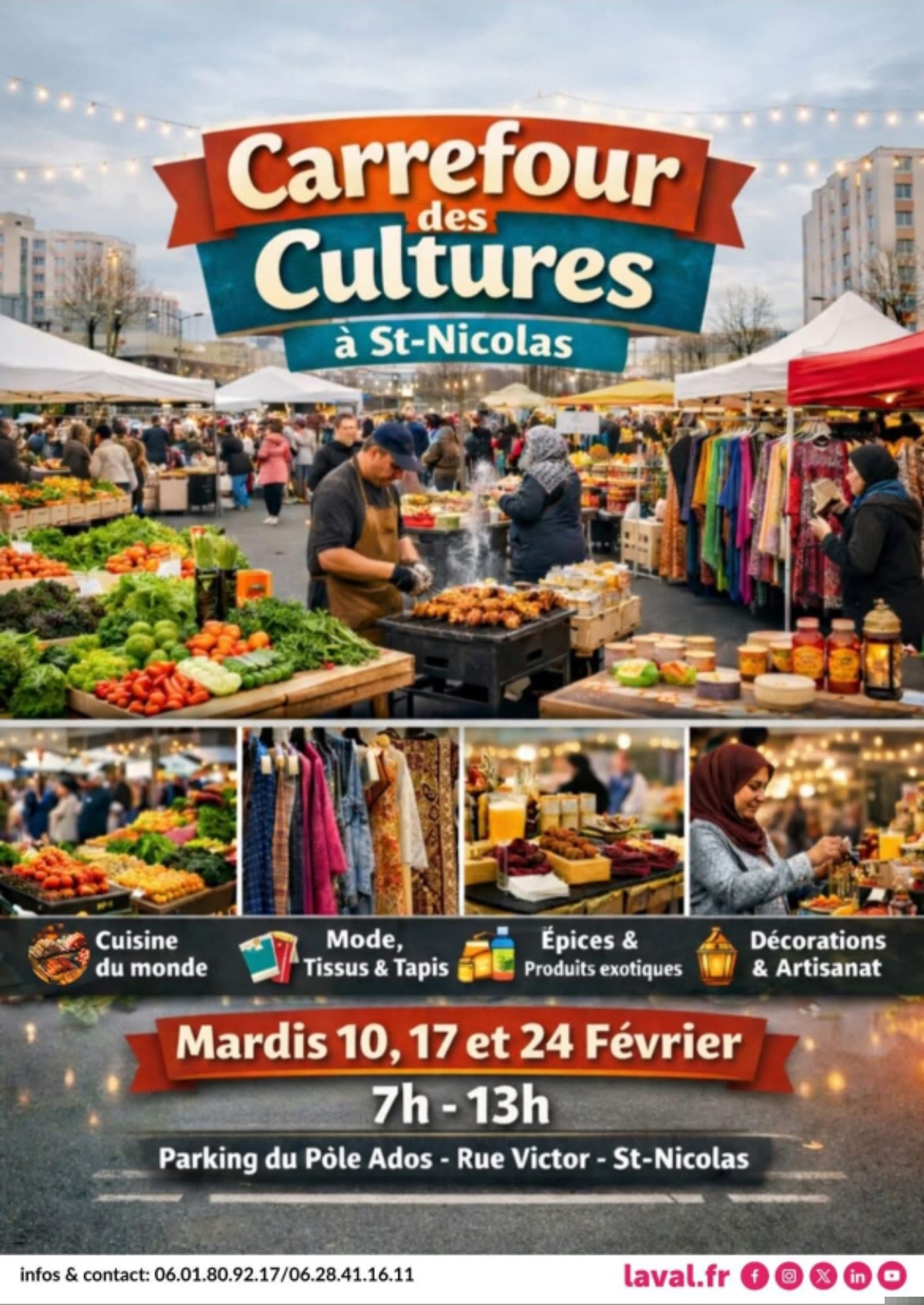 Venez découvrir le marché "Carrefour des cultures" à Saint-Nicolas, les 3 derniers mardis de février.