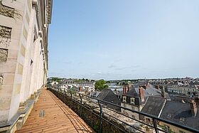 Perché au cœur de la ville, la terrasse du Château-Neuf s’ouvre à nouveau aux visiteurs. Entre valorisation du patrimoine et aménagements pensés pour le confort du public, le site invite à (re)découvrir ses abords sous un nouveau jour, avec en point d’orgue une terrasse progressivement étendue offrant une vues privilégiée sur la ville et la rivière.