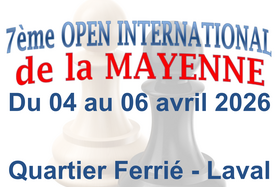 Ne manquez pas le 7ème Open International d'Échecs de la Mayenne du 4 au 6 avril au Quartier Ferrié à Laval. Venez observer ou participer à ce tournoi de haut niveau organisé par le CDJE 53, clôturé par une remise de prix solennelle le lundi soir.